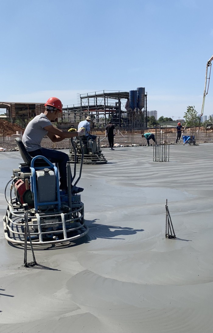 ◆ 由一定顆粒級配的礦物合金骨料、特種水泥、其他摻和料和外加劑組成。 ◆ 將其均勻地撒布在初凝階段的混凝土表面,經(jīng)整體固化后與混凝土地面形成一個密實整體。 ◆ 完成后面層,抗壓、抗沖擊、耐磨損且具有高致密度性和著色的高性能耐磨地面