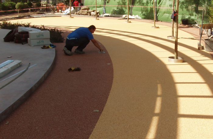 ◆ 雙組份膠料可調(diào)制多種色彩,配合常規(guī)石子做出不同色彩及圖案,極具裝飾性