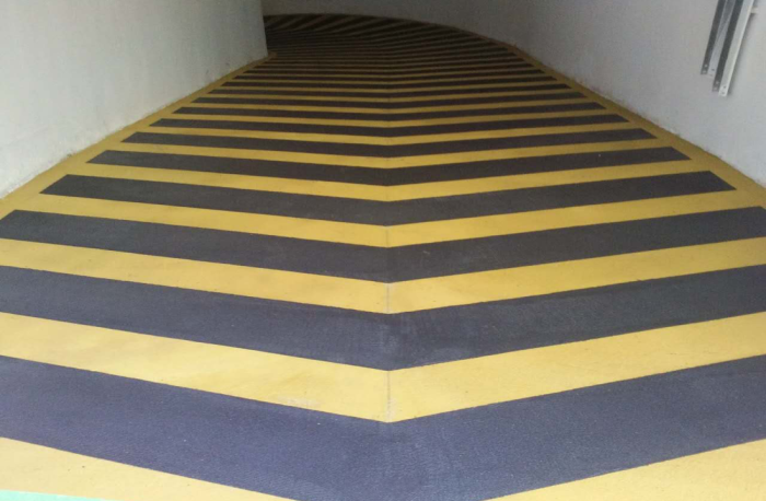 ◆ 無震動(dòng)止滑坡道材料是一種多角性硬度極高之礦物骨料與波特蘭水泥及外加劑組成,采用特種現(xiàn)場(chǎng)工藝施工而成。